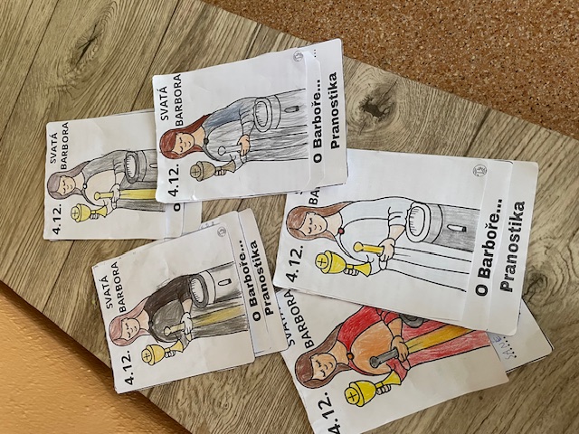 Dnes si 2. a 3. třída připomněla svátek svaté Barbory a děti čekalo několik stanovišť, kde plnily zábavné i trochu tajemné úkoly. Na prvním stanovišti měly děti za úkol uhodnout pojmy a obrázky spojené se svatou Barborou, které doplňovaly do textu. Další stanoviště bylo plné pohybu. Děti si měly pomocí pantomimy zahrát kousek z příběhu svaté Barbory. Bylo zajímavé sledovat, jak se snaží beze slov vyjádřit, co se v příběhu odehrálo. U dalších úkolů se děti společně naučily pranostiku „Na svatou Barboru, saně do dvoru“. Přemýšlely, co asi může znamenat a společně zjišťovaly, proč lidé dříve těmto pořekadlům tolik věřili. Na závěr si ve skupinách vytvořily flipbook.