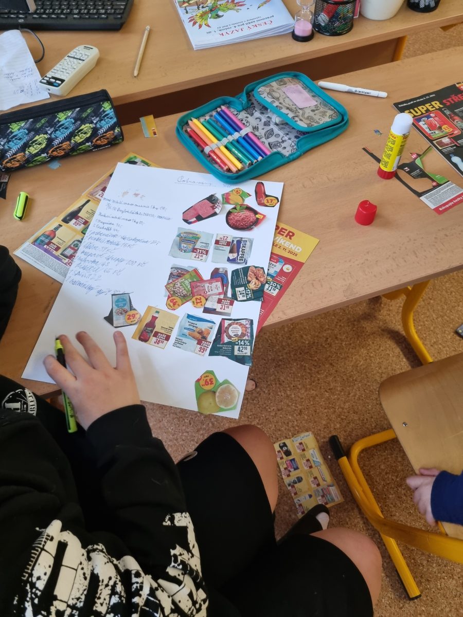 Na začátku projektu se žáci věnovali zkoumání hmotnosti pomocí odhadů a kuchyňské váhy. Tipovali, kolik váží například litr vody a své odhady si hned ověřovali. Vážili také různé potraviny i předměty ze třídy, a přitom si procvičili převody jednotek. V další části pracovali s různými letáky. V týmech dostali úkoly, jako například vybavit byt, nakoupit potraviny či léky pro čtyřčlennou rodinu nebo zařídit dílnu. Každý tým měl stanovený rozpočet a musel vybrat vhodné položky, spočítat celkovou částku a vejít se do limitu. Cestou narazili i na běžné obchodní triky, třeba proč ceny často končí na …,90 Kč.