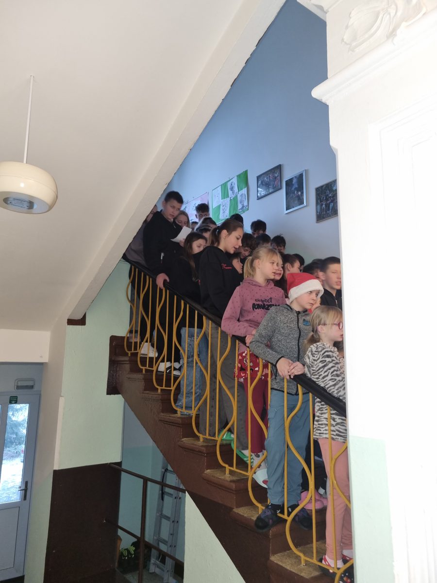Dnes, v poslední školní den před vánočními prázdninami, panovala v naší škole slavnostní a radostná atmosféra. Všichni žáci se sešli na školních schodech, kde si společně zazpívali vánoční koledy. Některé třídy si připravily také krátké básničky, které celé setkání krásně doplnily a navodily pravou vánoční náladu.